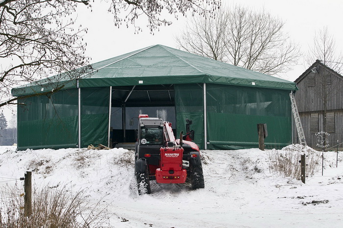 Der Platz und auch die Ovalbahn waren gut zum Reiten zu nutzen. Für die Pferde auf den Koppeln war „Spaß pur“ angesagt. Spói von Hammersdorf, der übrigens zum Verkauf steht, hatte ein kleines Training auf dem Reitplatz. Ohne Winterbeschlag war das gar nicht so einfach für ihn, aber er zeigte gute Balance und Trittsicherheit. Was alle Einsteller ganz glücklich macht ist die Tatsache, dass der Bau des überdachten Longierzirkels zügig voran geht und kurz vor der Fertigstellung ist.